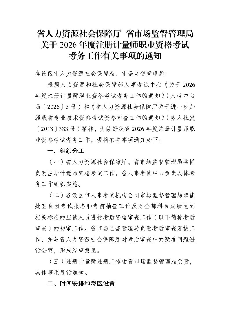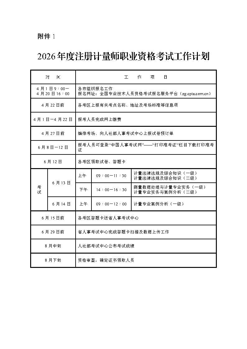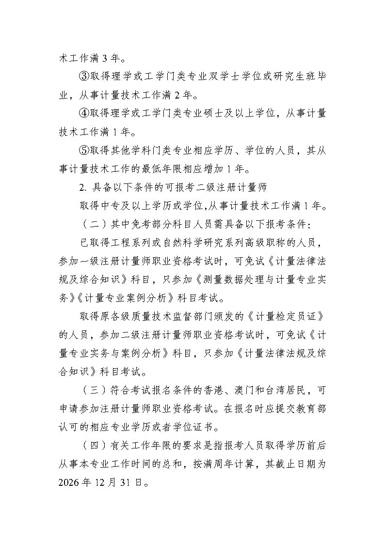 关于2026年度注册计量师职业资格考试考务工作有关事项的通知