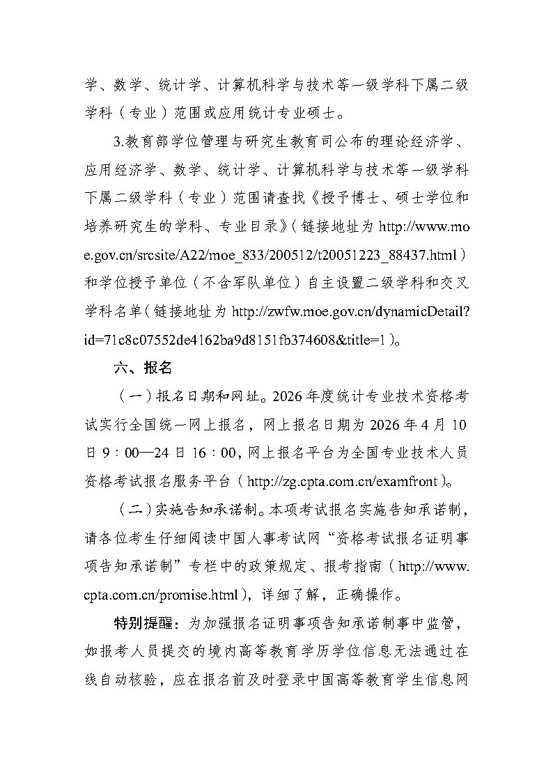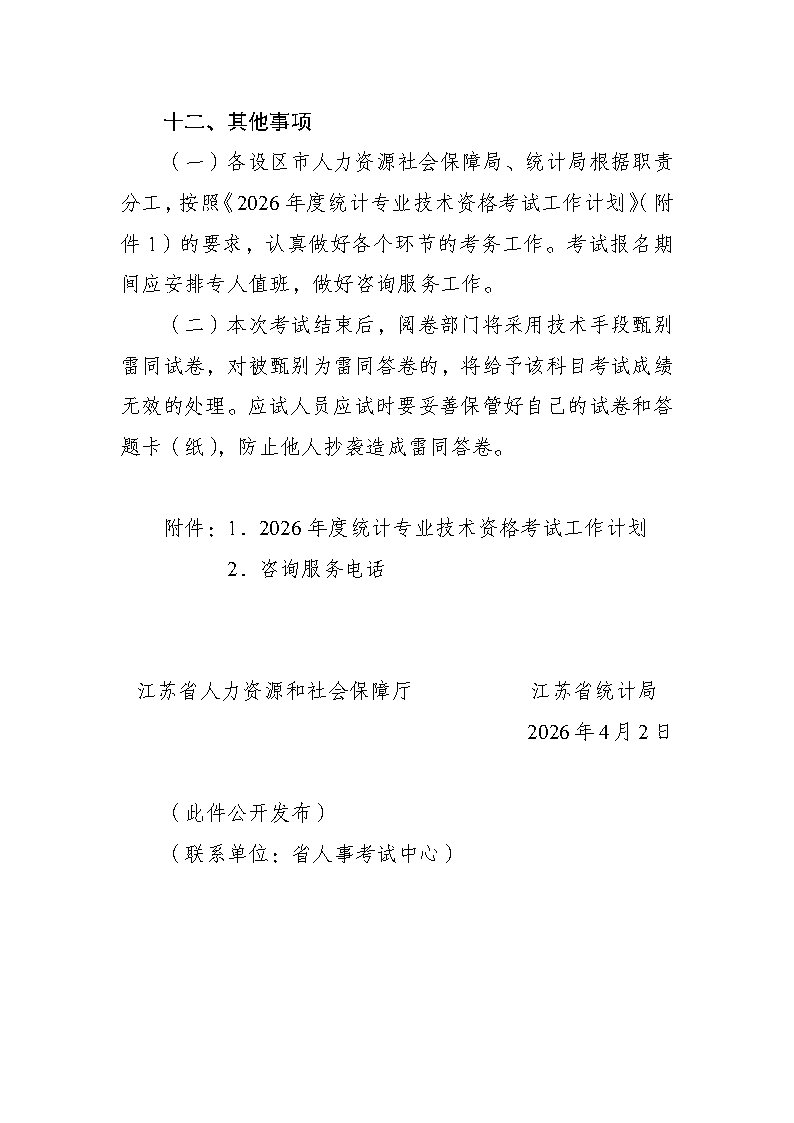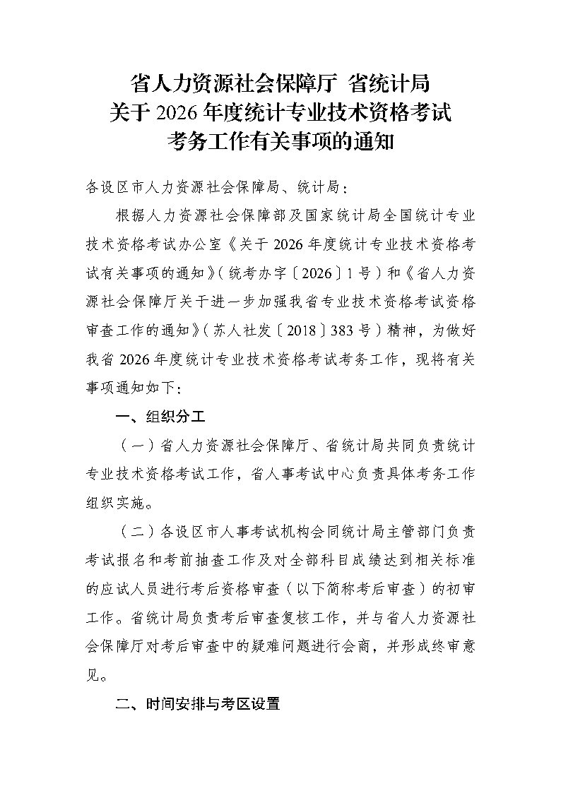 关于2026年度统计专业技术资格考试考务工作有关事项的通知